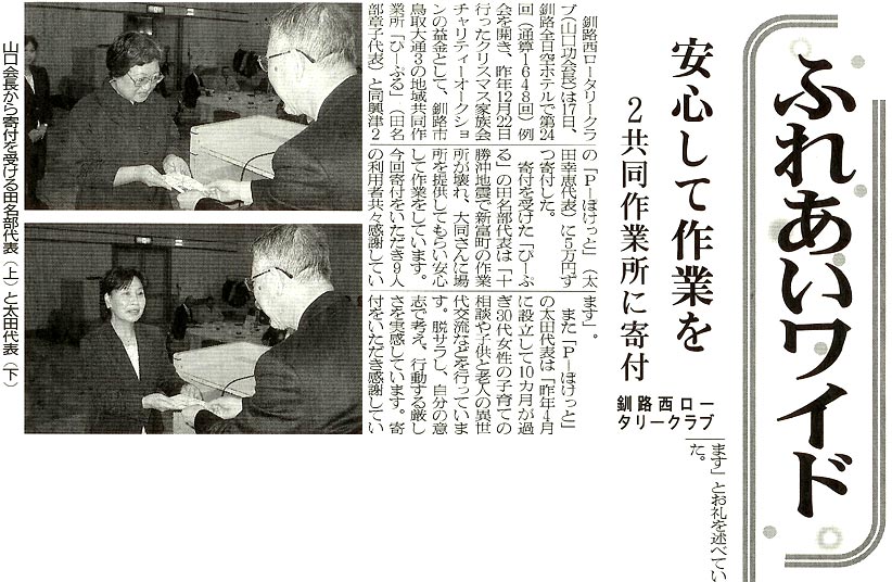 釧路新聞 平成17年1月18日(火) 朝刊 2ページ 「ふれあいワイド」 掲載記事